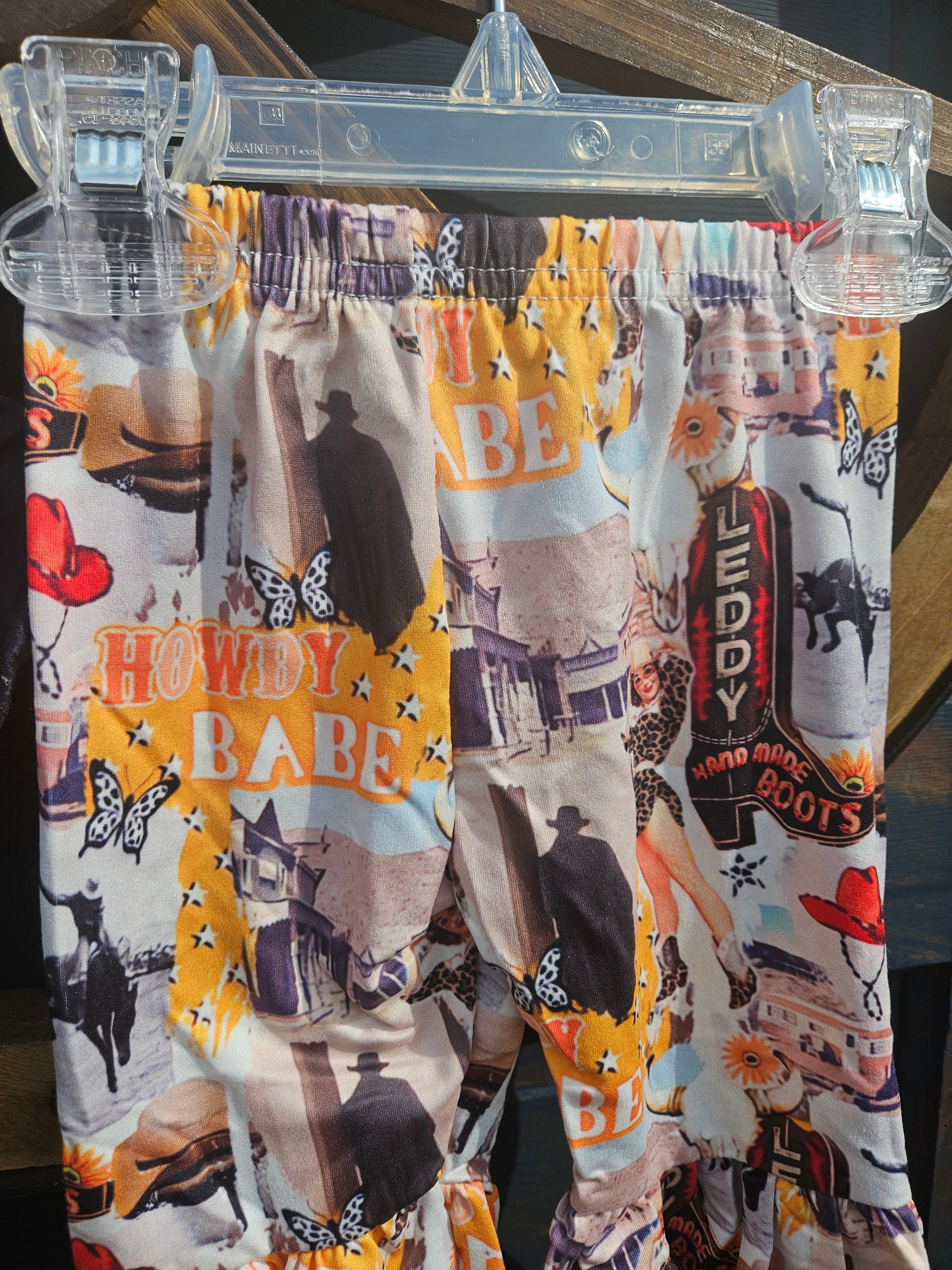 Yeehaw! This bell bottom set is the perfect addition to any wild west wardrobe. The vintage print adds a touch of sass to your cowboy style. Say "howdy" to your new favorite outfit!